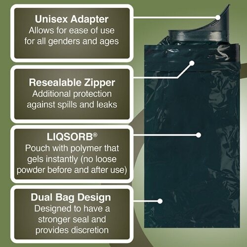 Unlike many disposable options, TravelJohn!® urinal bags are resealable, you don’t have to throw it away after every use. The odor-locking seal and leak-proof construction allow multiple uses until the bag is full, making it not only convenient but also efficient.